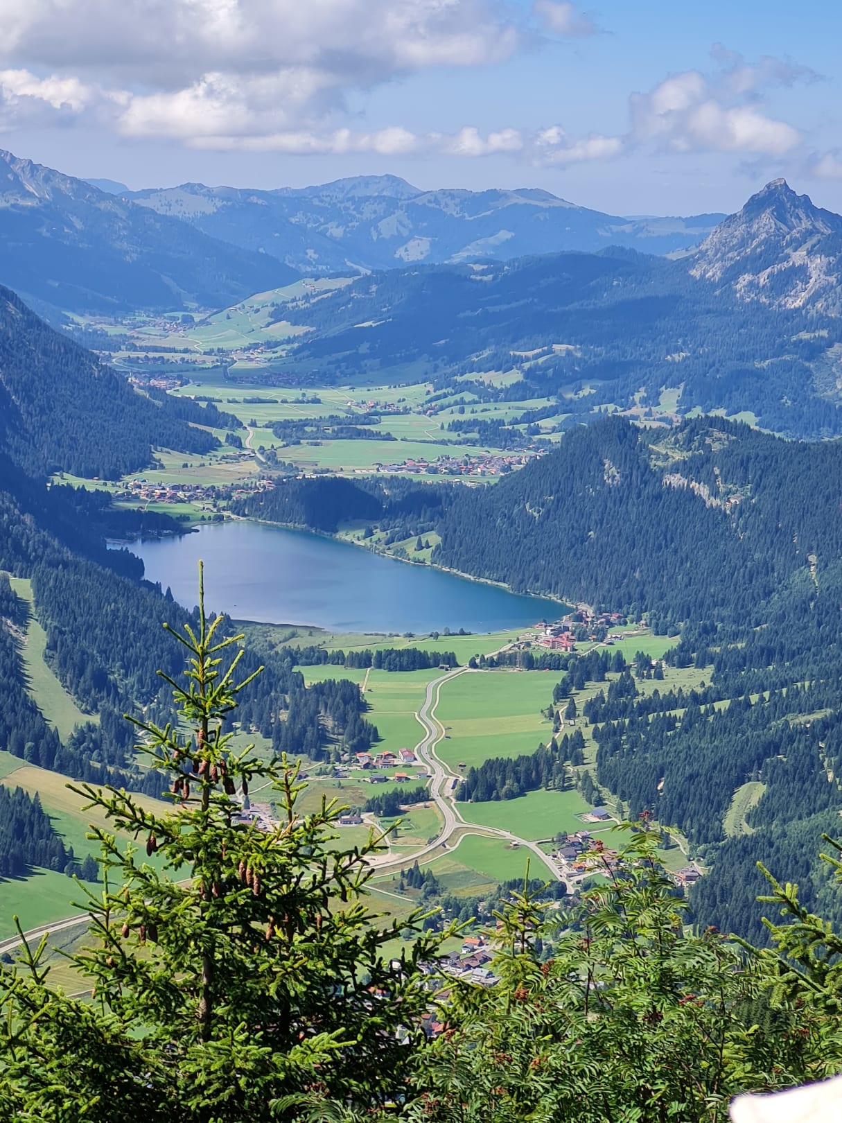 AusblickVom Hahnenkamm aus hat man einen gigantischen Einblick in die Täler ringsum. Hier ins Tannheimertal zum Haldensee