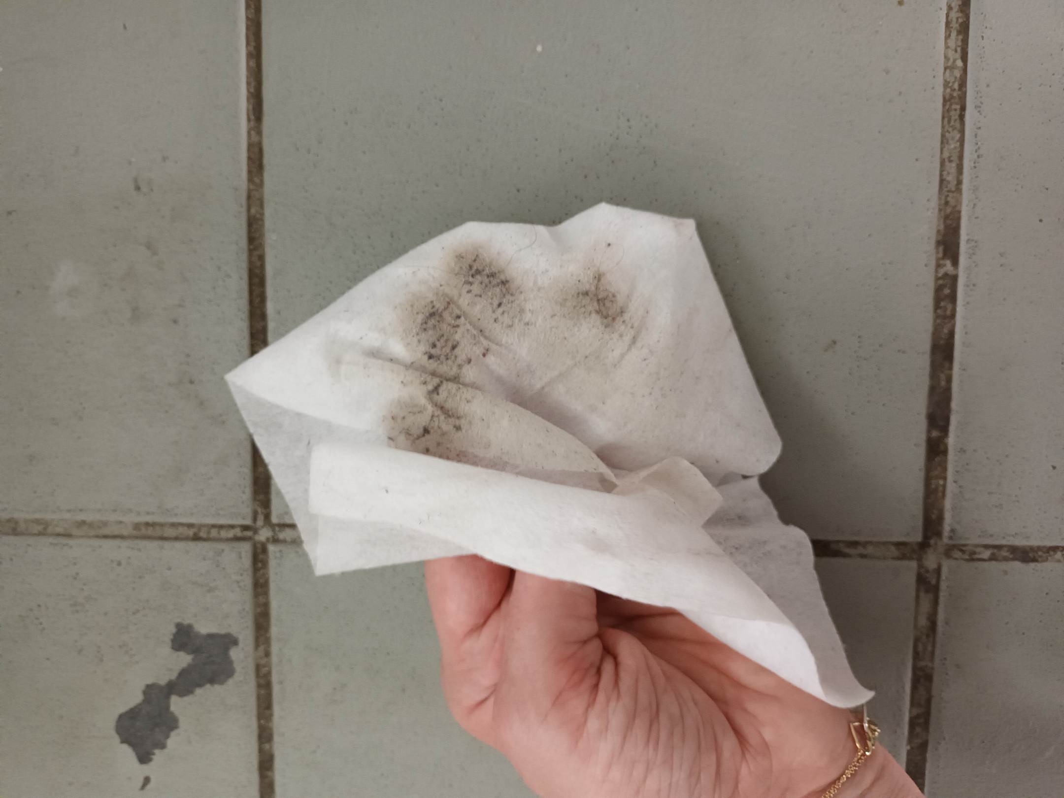 Nach einmaligem Wischen über den Boden im Bad
