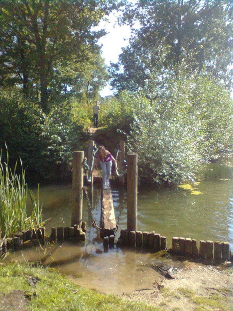 Im See befindet sich eine kleine Insel die von 2 Seiten über Stege zu erreichen ist.