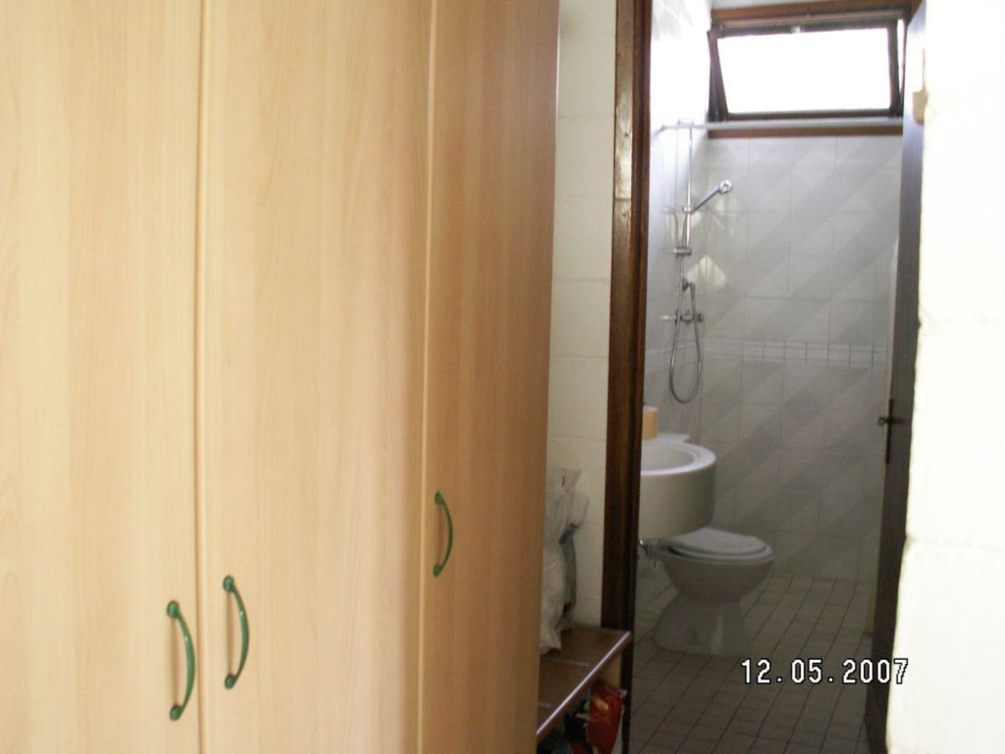 Kleiderschrank im Gang mit Blick ins Bad