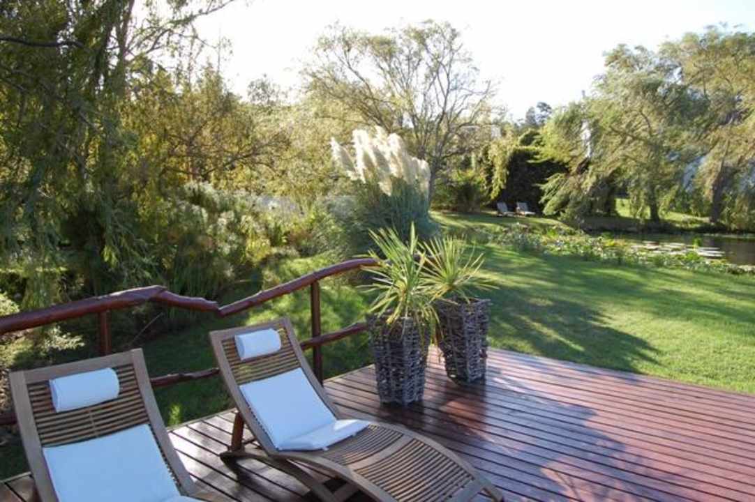 Blick vom Jacuzzi zum Garten/Hotel