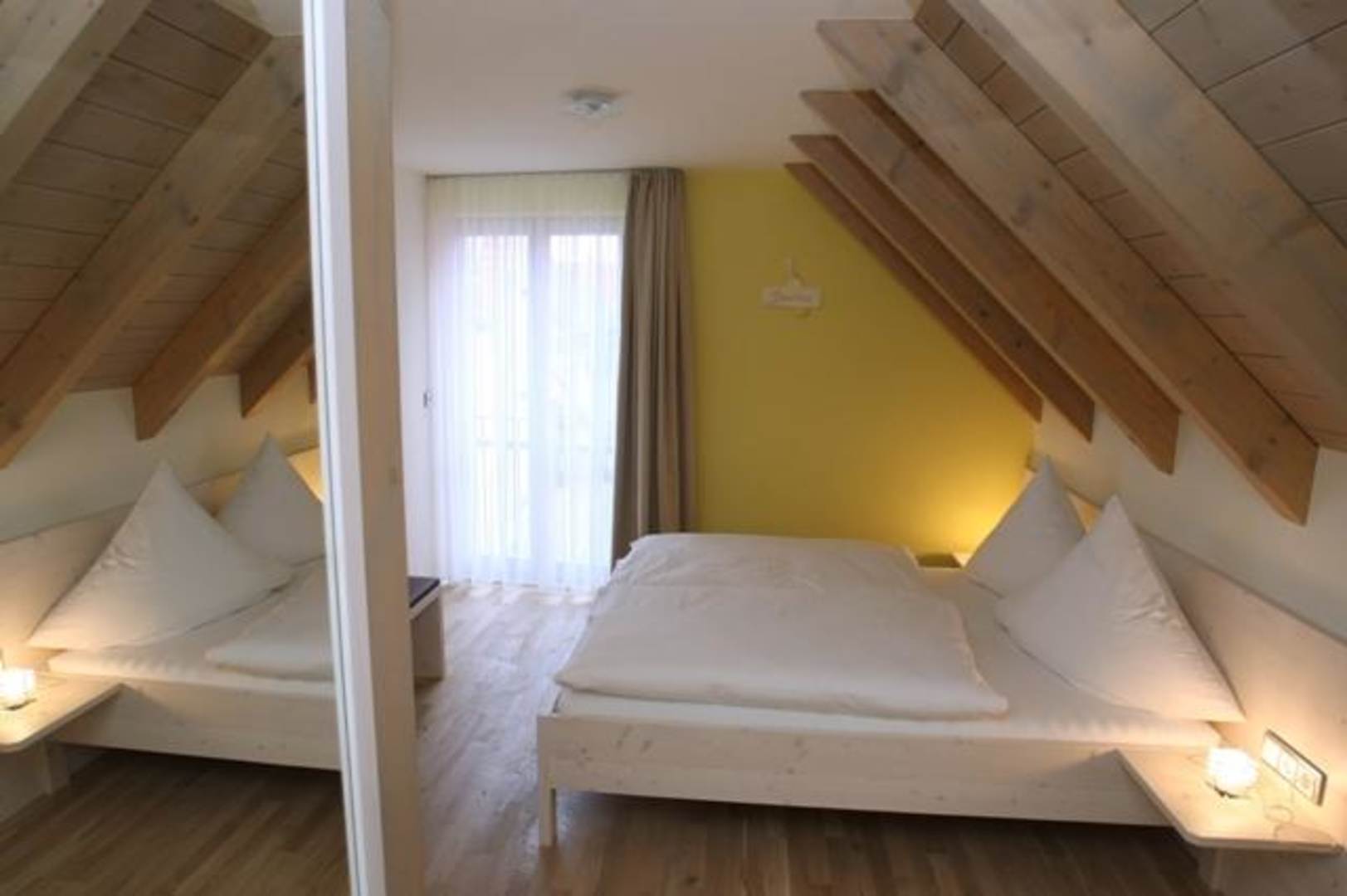 Zimmer "Bacchus"Die Farbharmonie und Raumgestaltung unserer Zimmer orientieren sich an den fränkischen Weinklassifizierungen "Neues Franken, Klassisches Franken und Großes Franken".