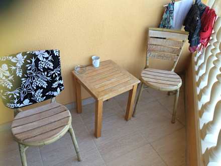 Kleiner Balkon mit zwei unbequemen Stühlen.