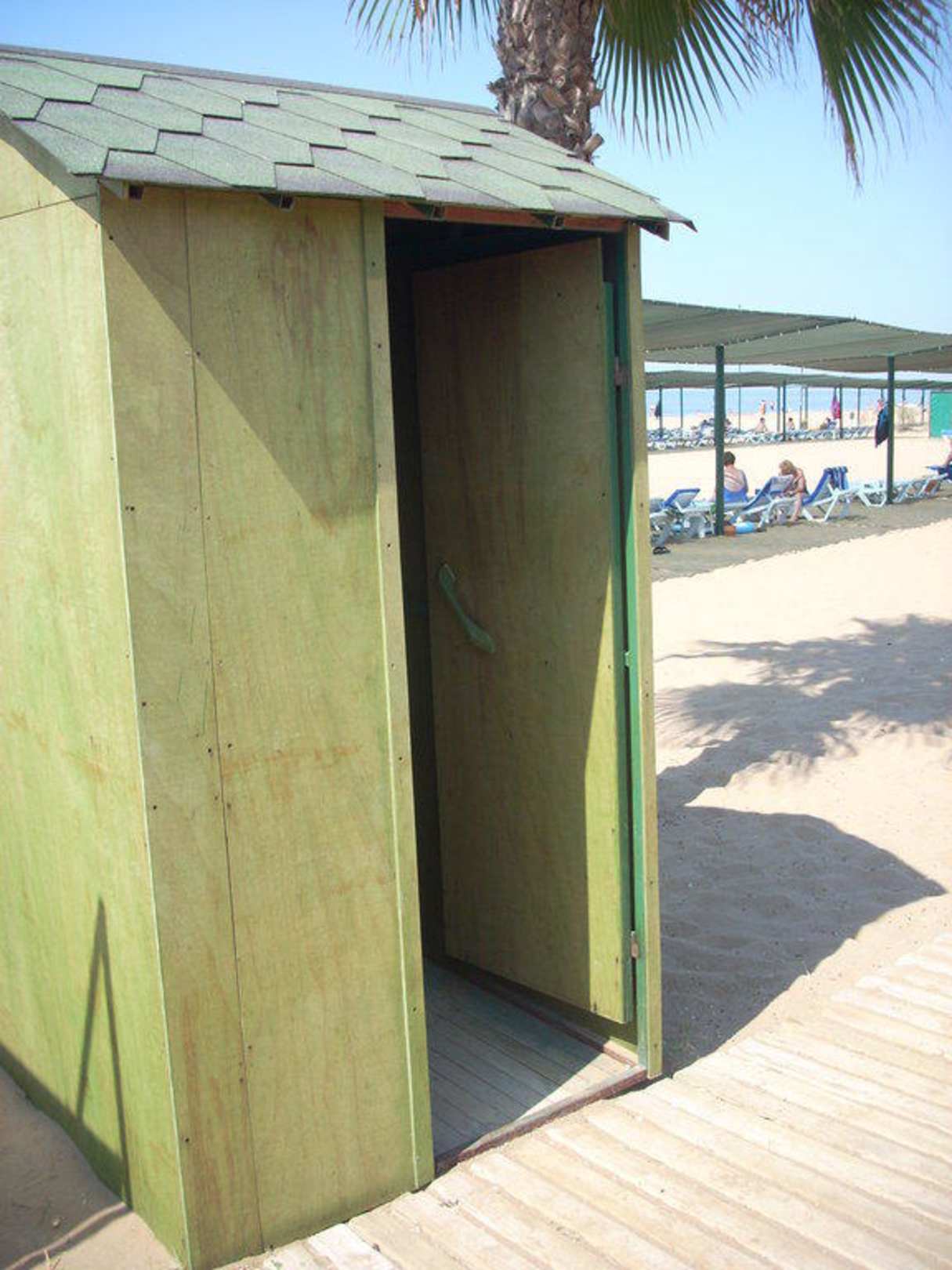 etwas dunkel da drin. Deswegen hat sich einer vor die angelehnte Tür gestellt. So hatte man Licht. Einige Frauen haben sich aber einfach am Strand umgezogen, war auch OK.