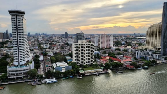 Ausblick vom Zimmer auf den Fluss und die Stadt