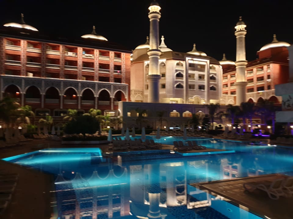 Sehr schön beleuchtet. Tolle Poolanlage