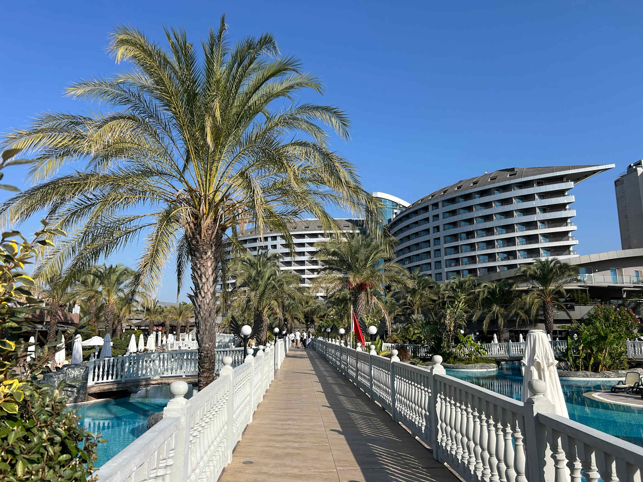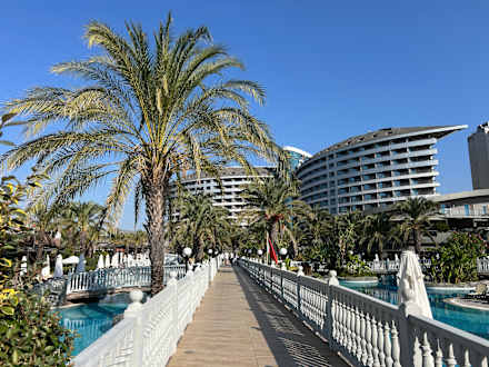 GartenanlageViele Brücken überspannen die großzügige Poolanlage. Auch mit mobilen Einschränkungen gut nutzbar.