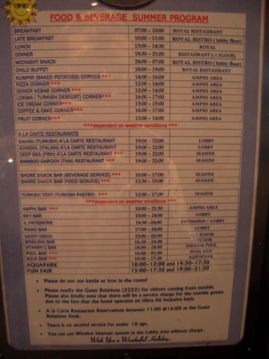 Eine Karte mit den Essensmöglichkeiten im RW