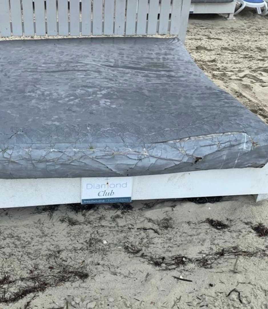 eines der zahlreichen Tagesbetten am Strand.