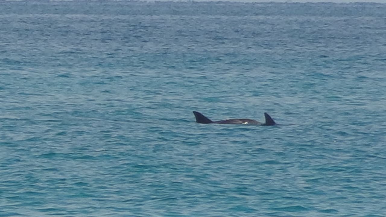 wilde Delfine zogen morgens am Hotelstrand vorbei