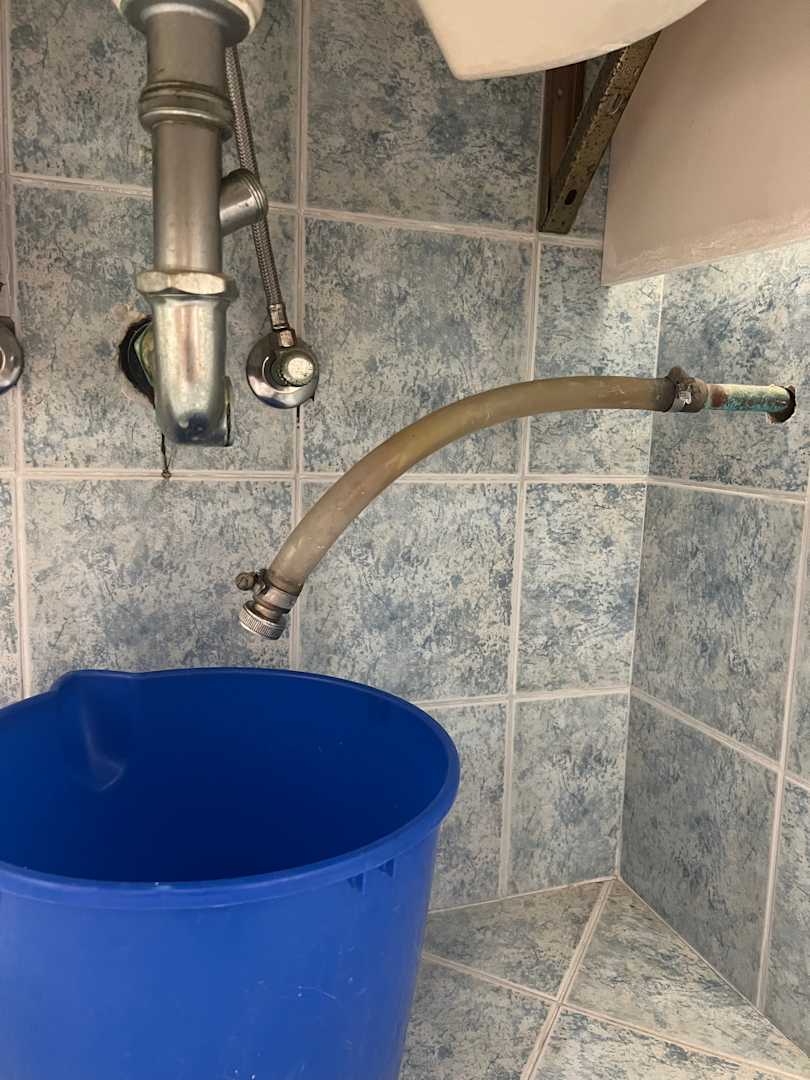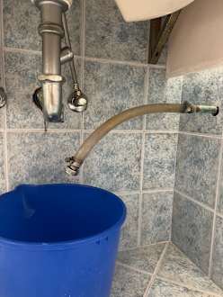 Nicht befestigter, in einen Eimer tropfender Schlauch der Klimaanlage
