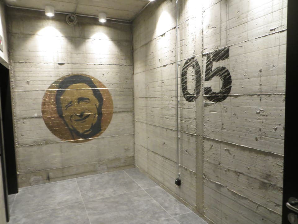 Die nackten Betonwände direkt vor den Aufzügen