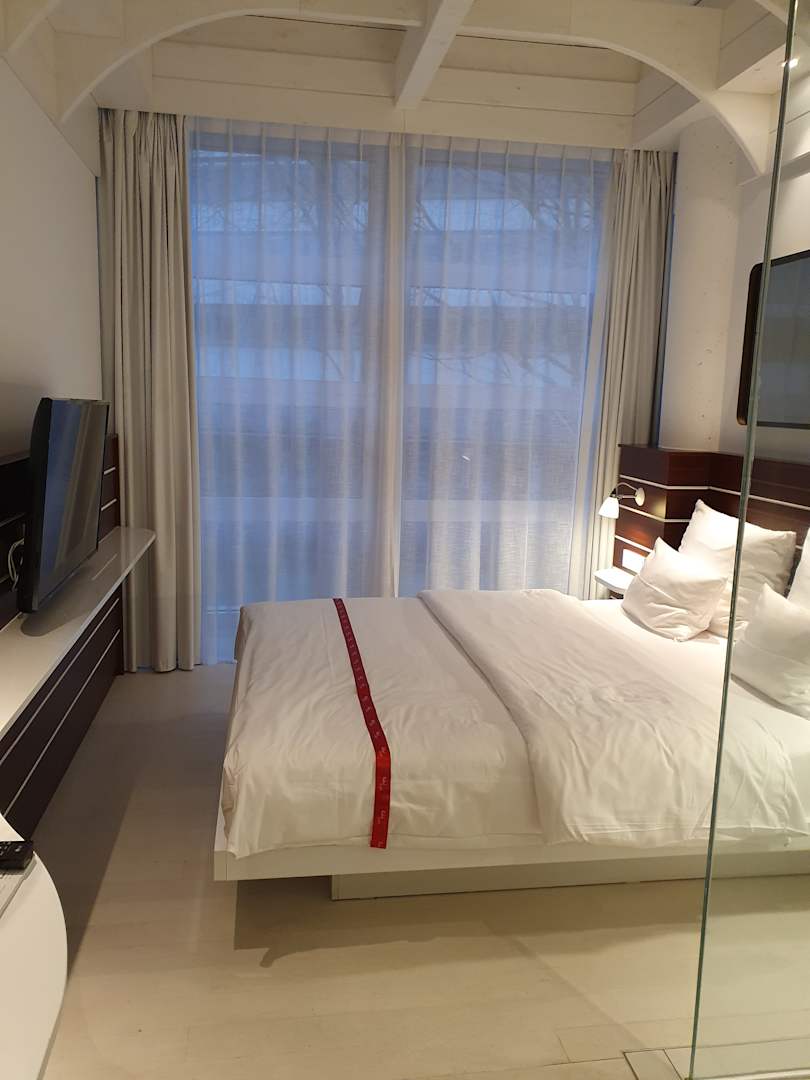 rechts im Bild: Glaswand zur Dusche