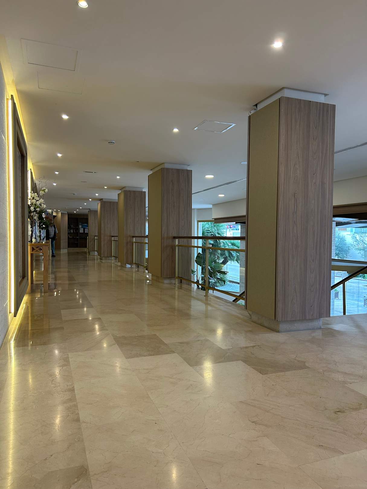 Weg von der Poolbar zu den Fahrstühlen (3 vorhanden).