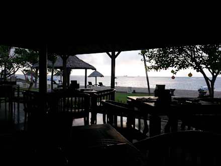 Blick von der Frühstücksterrasse aufs Meer