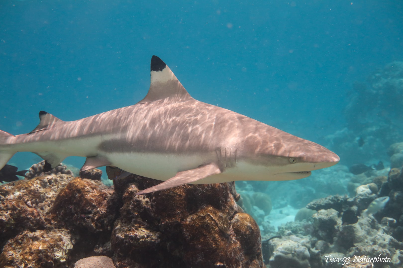 beim schnorcheln: Schwarzspitzenrifffhaie öfters bis zu 12 Stück!