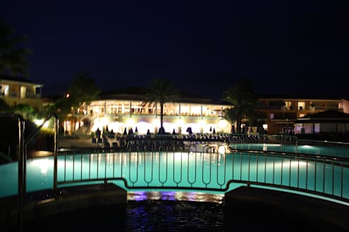 Ausblick vom Whirlpool Richtung Restaurant am Abend