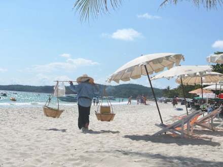 Obst-Zeitca. stündlich kam ein thai vorbei und verkaufte unaufdringlich am strand mangos, ananas, etc.
