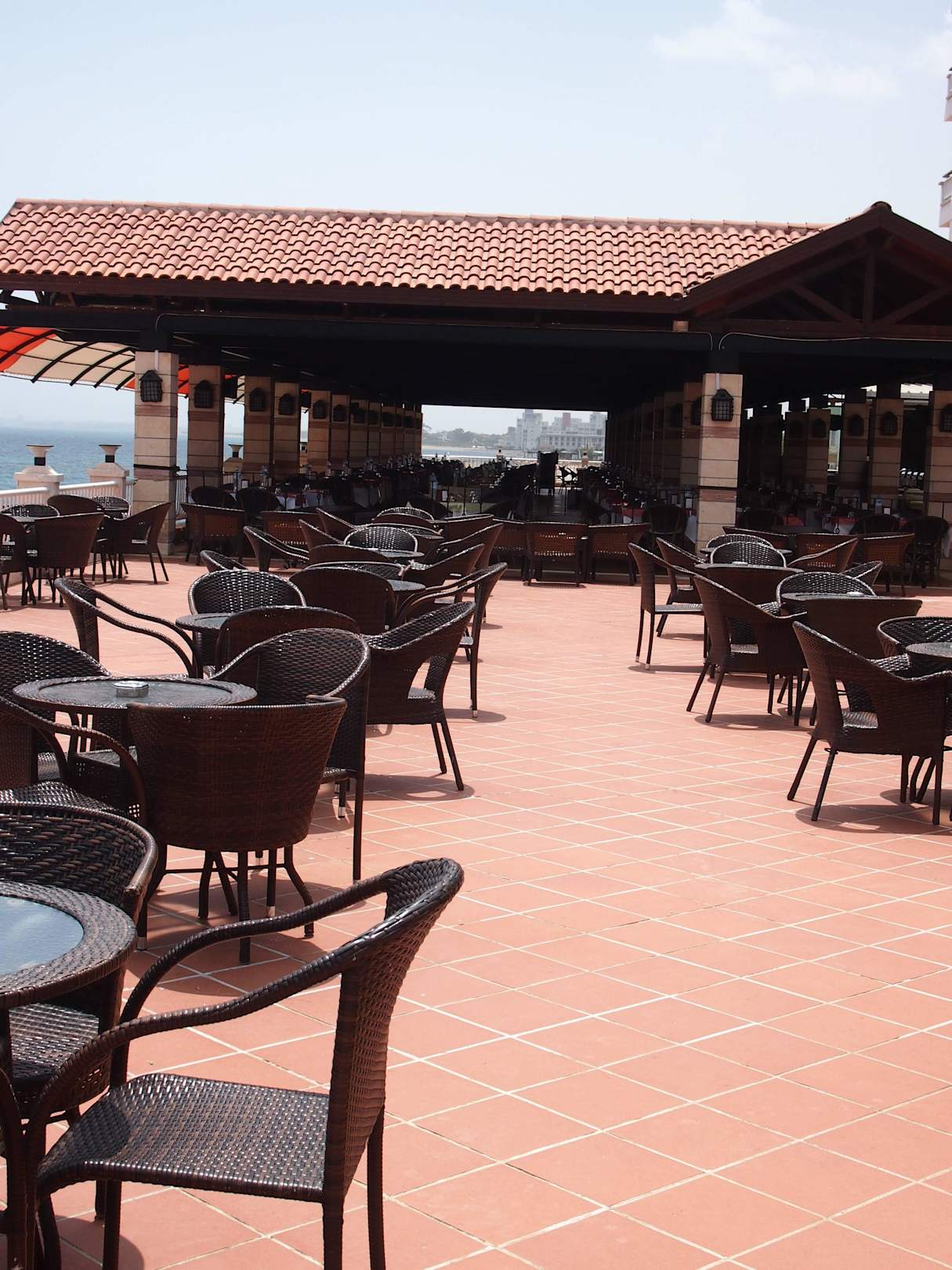 Pool Terrasse mit Blick auf Restaurant Außenbereich