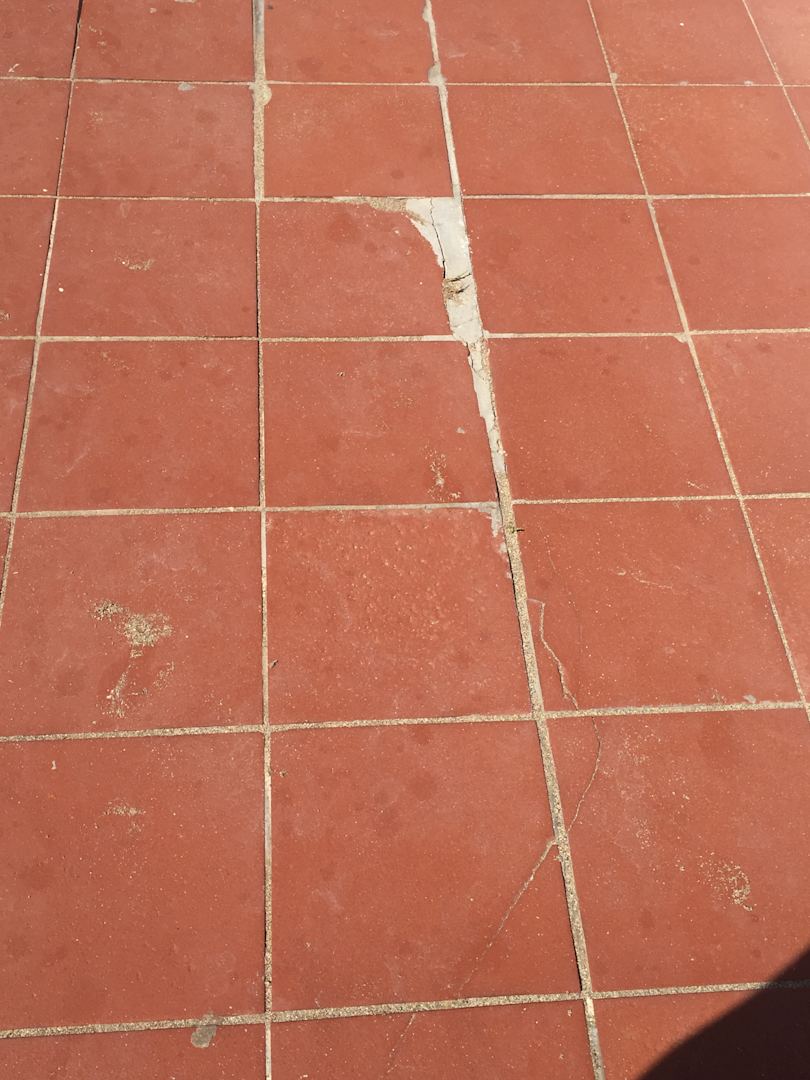 Kaputte und alte Fliesen am Strand.
