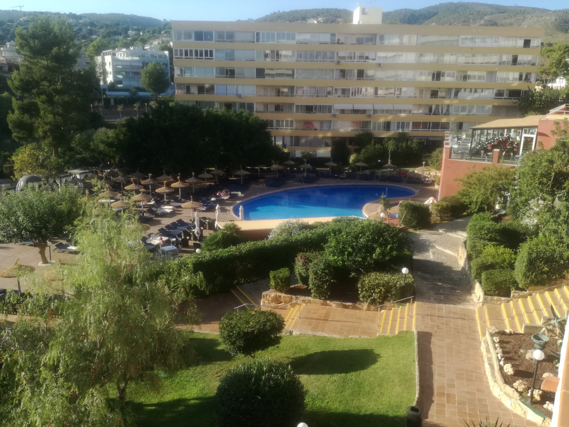 AusblickBlick auf den Hauptpool aus der 2.Etage...Rechts oben das Restaurant wo auch drußen gefrühstückt werden kann...TOP..