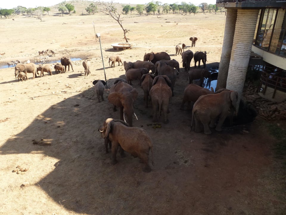 Elefanten vor der Lodge