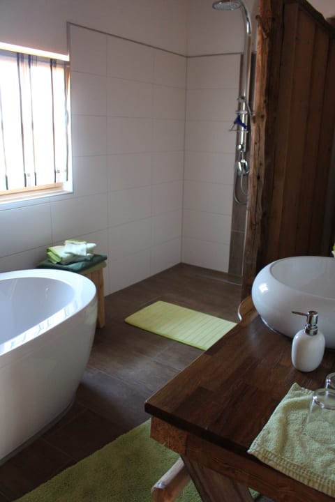 Badezimmer mit Whirlwanne und Regenwalddusche
