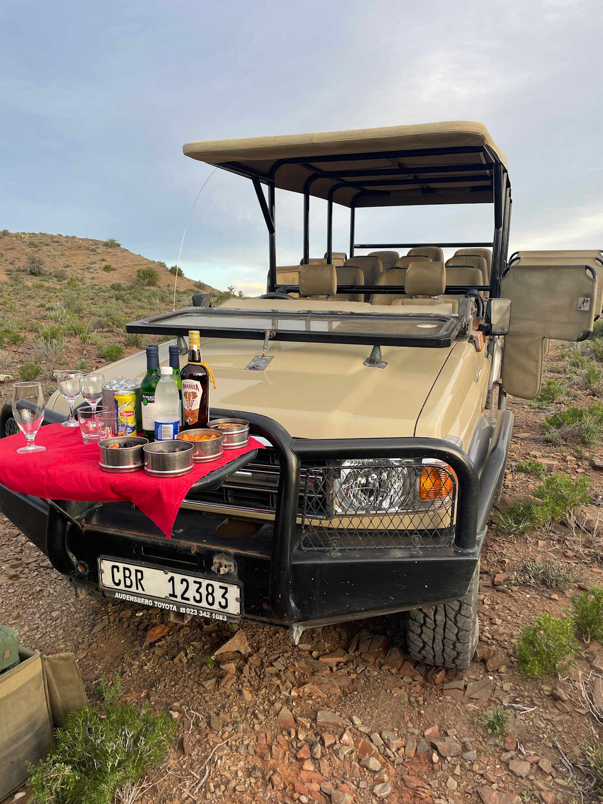 Sundowner auf der Pirschfahrt