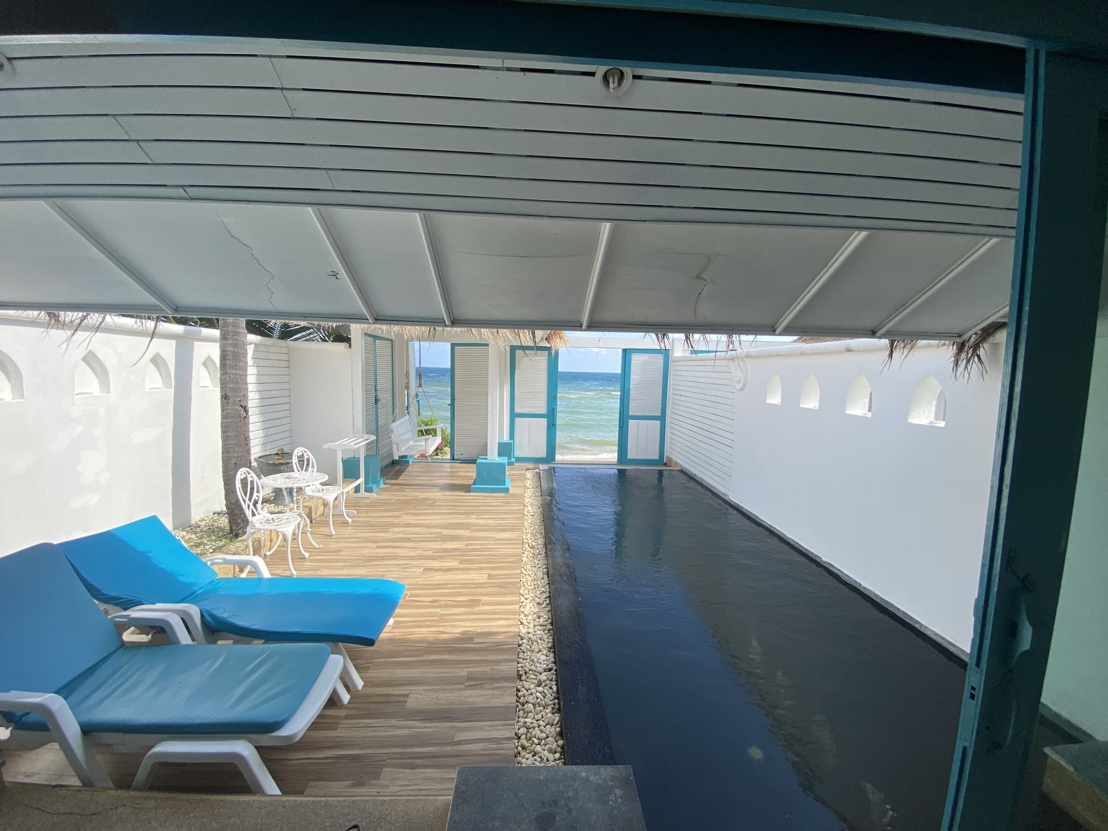 Blick vom Zimmer Poolvilla Richtung Strand
