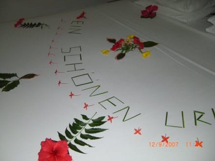 Jeden Morgen wird das Bett wunderschön geschmückt