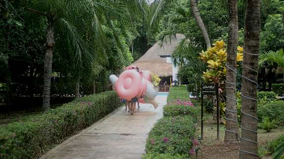 Auf dem Weg zum Pool - aufblasbare Schwimmhilfen nicht vergessen :-) !