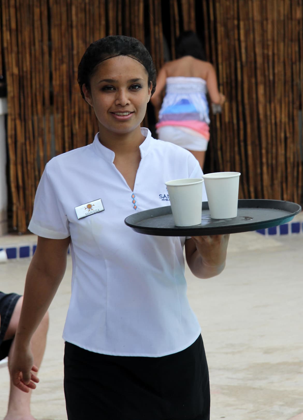 Fleissige Servicesmitarbeiterin am Pool immer freundlich und nett sind die Mitarbeiterinnen des Getränkeservice im Poolbereich