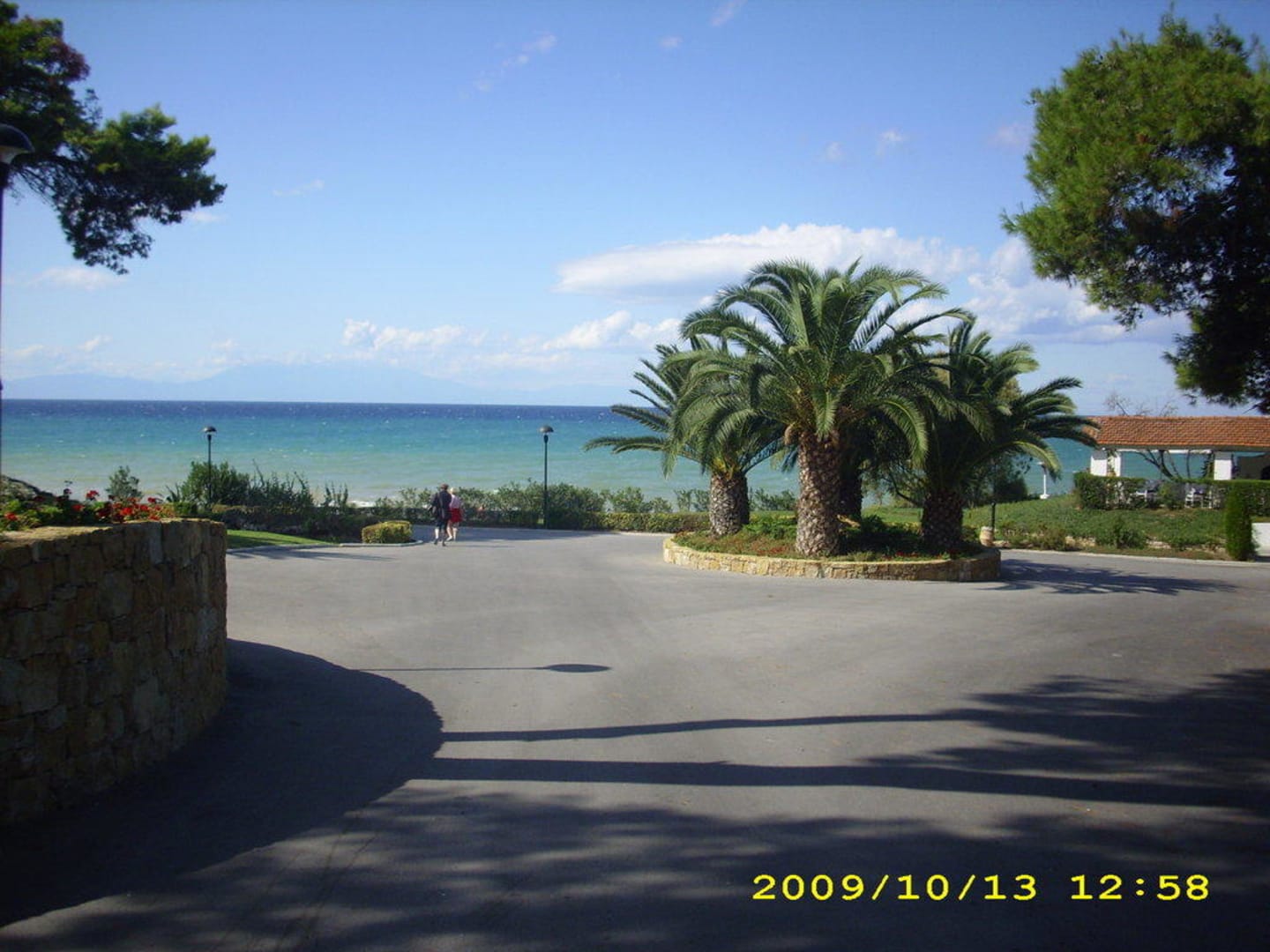 Außenbereichlinks gehts zum Hauptgebäude und rechts ist eine kleine taverne zu sehen, inder auch gegessen werden kann tagsüber oder abends