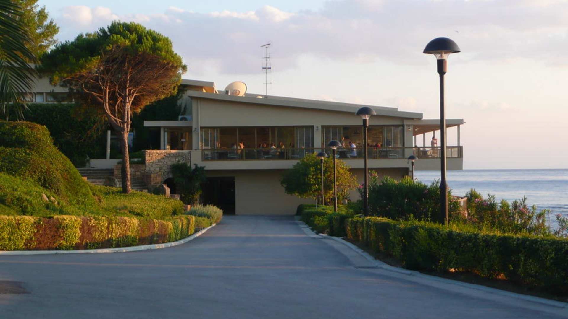 Der Weg zum MinimarktWeg zum Minimarkt im Gebäude mit Rezeption und Restaurant durch die Gartenanlage mit Blick aufs Meer