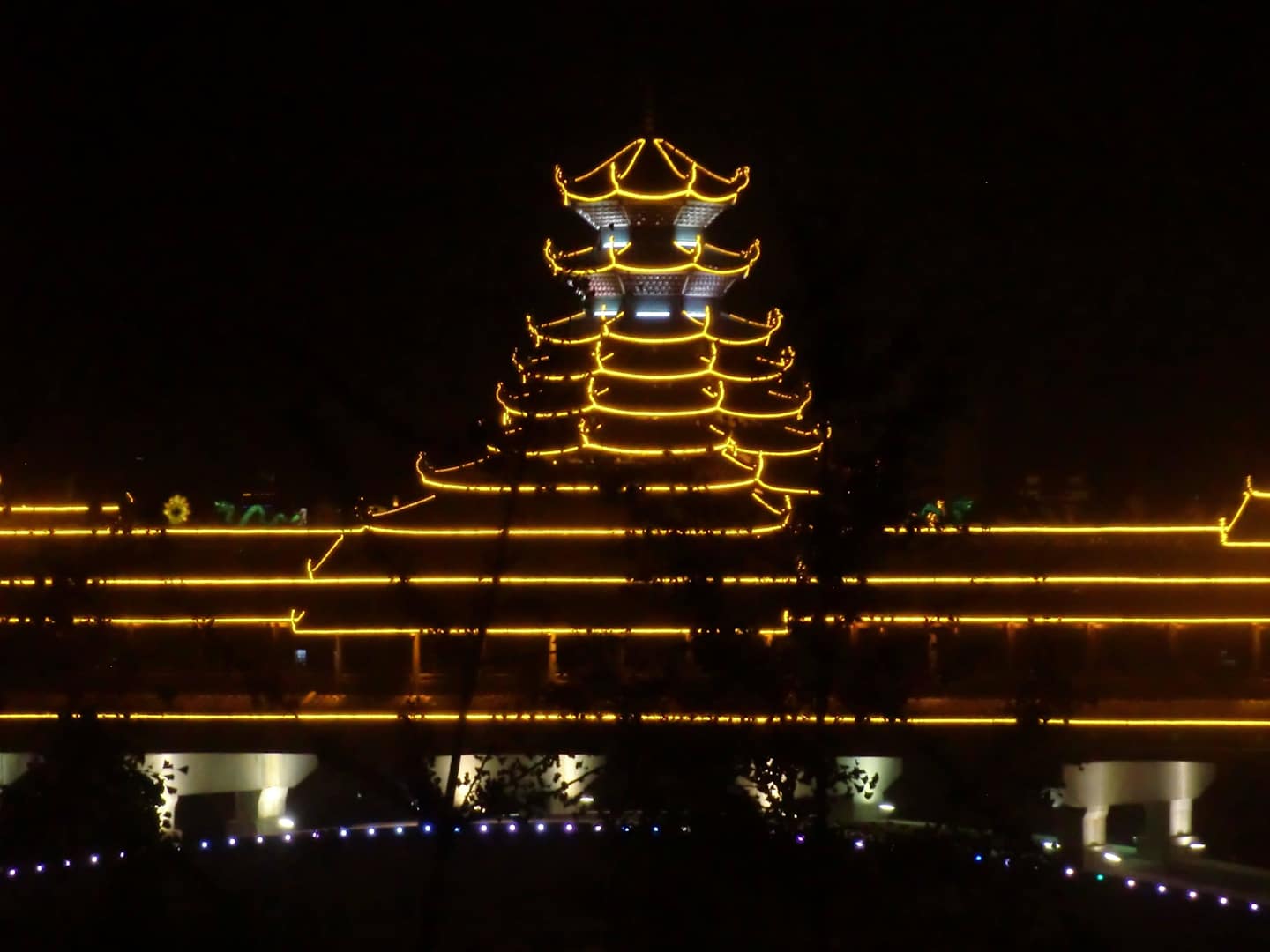 Fengyu-Brücke bei Nacht Sanjiang Dongxiang Guest House