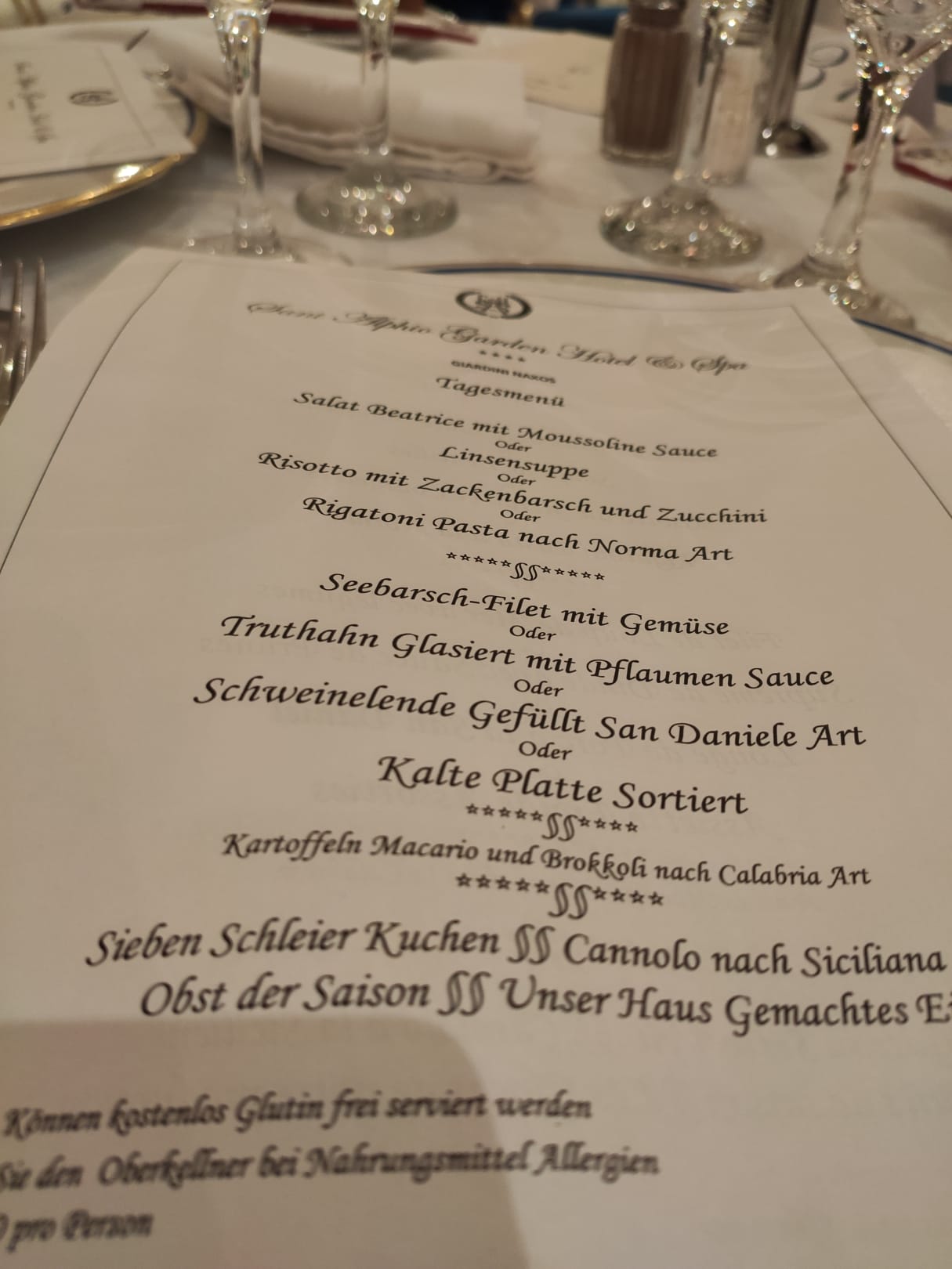 Speisekarte am Abend