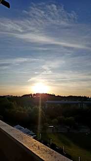 Blick in die untergehende Sonne vom Balkon