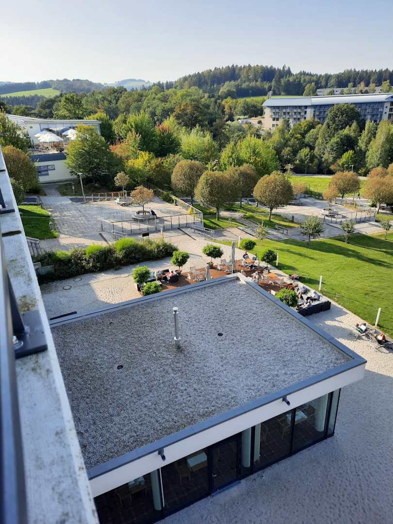 AusblickBlick zur Außenterasse und Kurpark