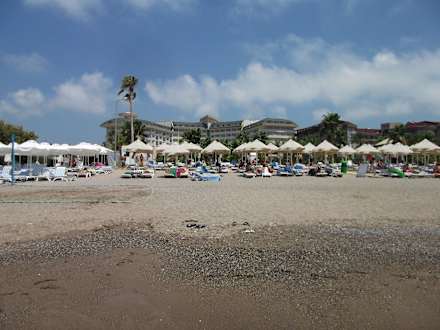 Blick vom Strand zum Hotel