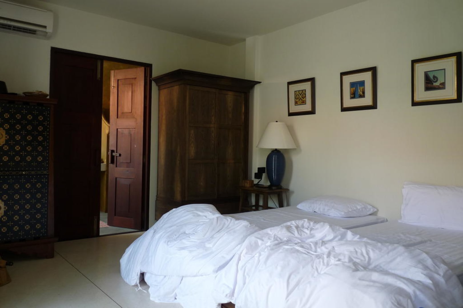 Schlafraum mit Tür zum Bad