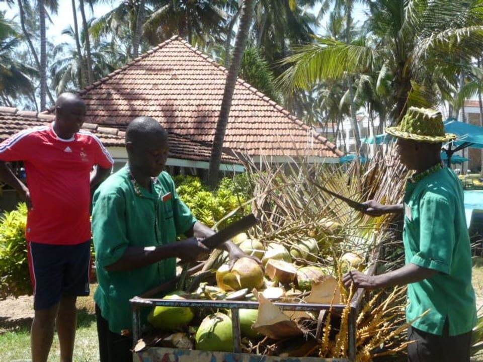 Kokosnusspflücker bei der Arbeit