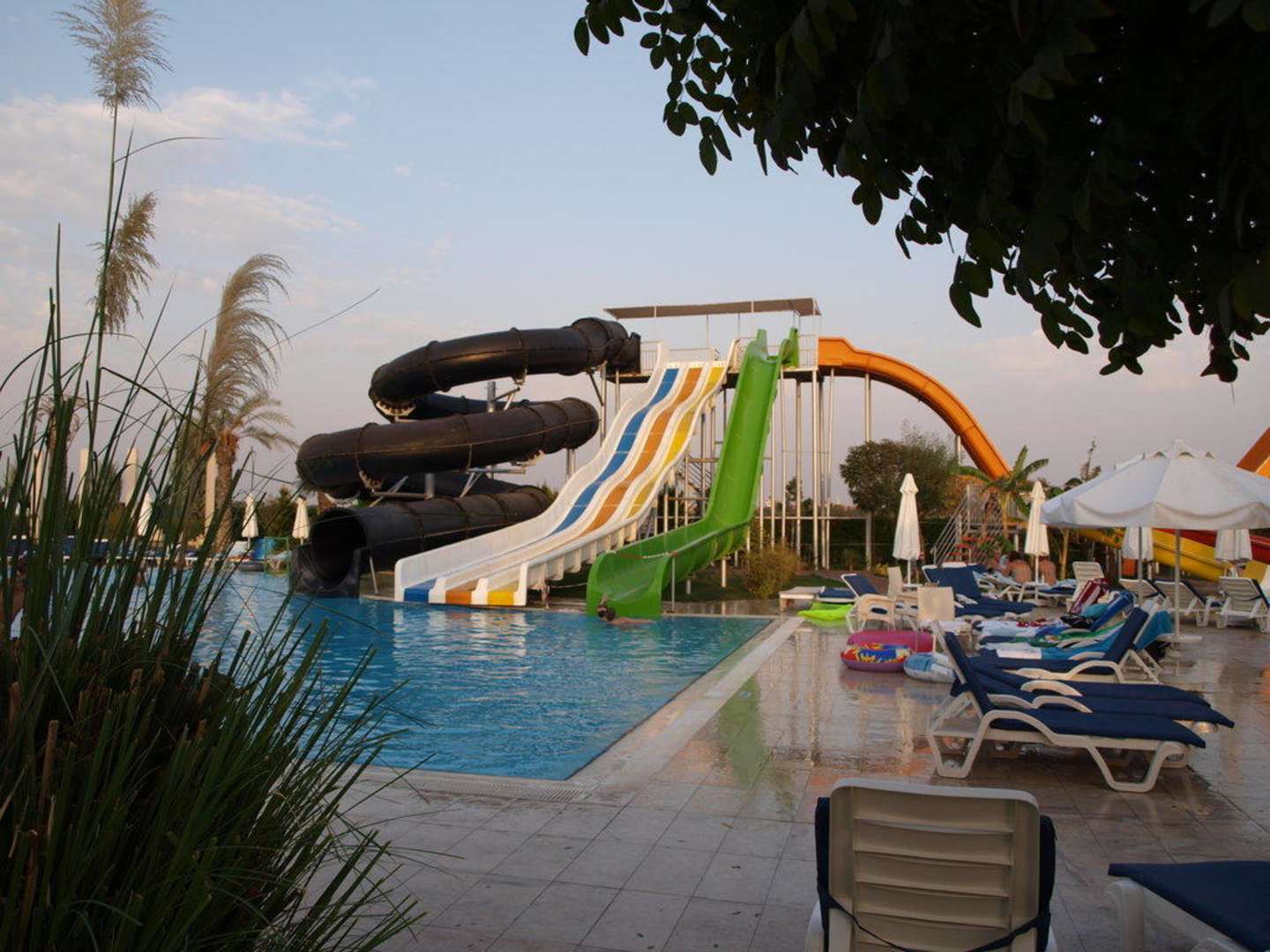 Die schwarze und orangene Rutsche dürfen nur mit Ringen/Luftmatratzen benutzt werden