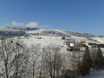 Blick vom Balkon ins Skigebiet