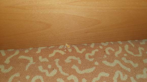 Kekskrümel auf dem gesamten Teppichboden