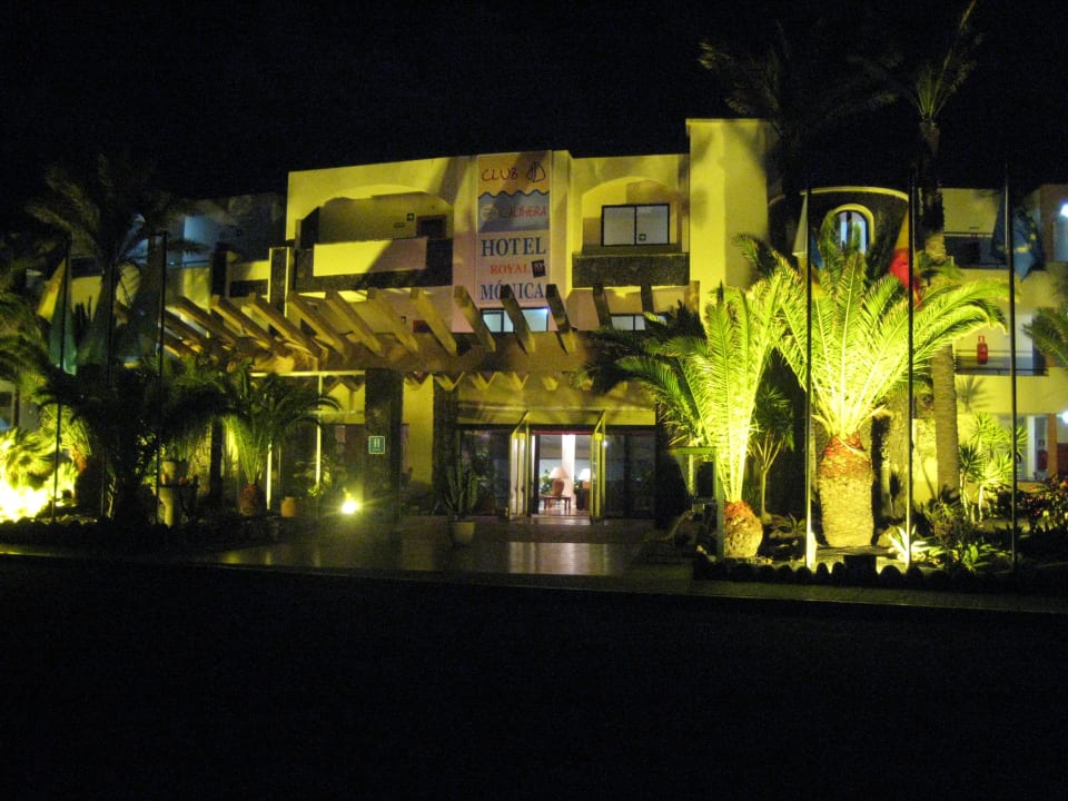 Der Hoteleingang bei Nacht