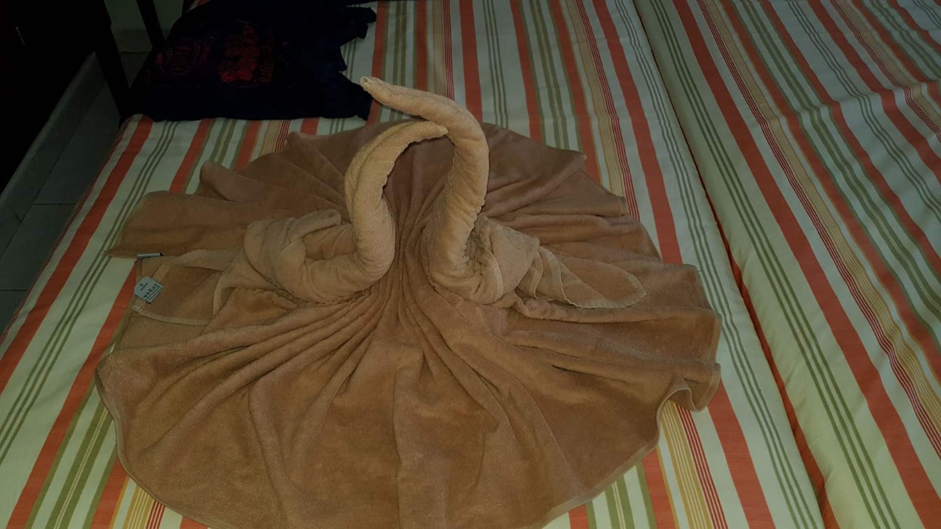 Jeden Tag wurde etwas aus Handtüchern ein Schwanenpaar gemac