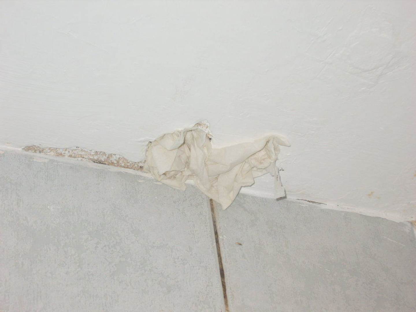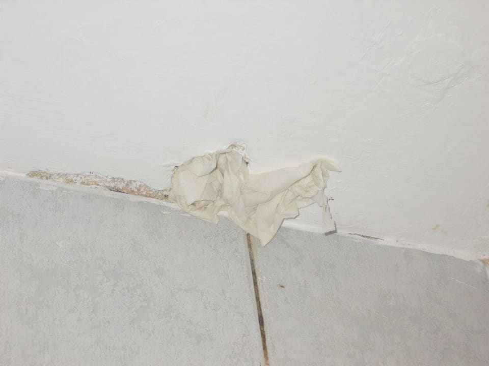 riesige Löcher im Bad wurden mit Toilettenpapier zugestopft, Kakerlaken haten so freien Zugang