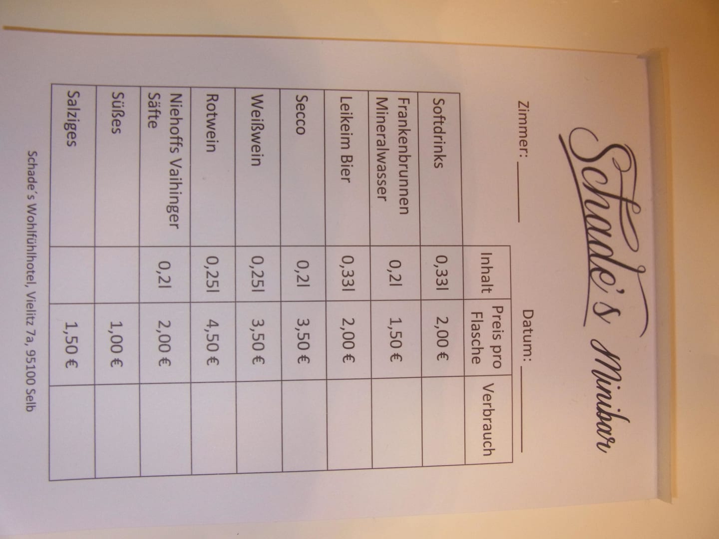 Preise Minibar