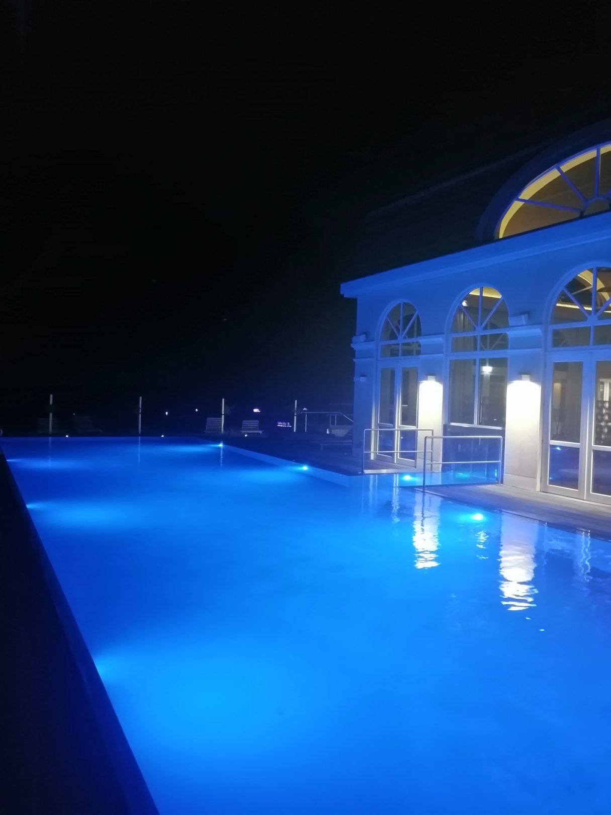 Pool am Abend wechselnd beleuchtet