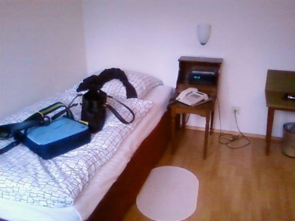 zusammengeschustert aus Lattenteilen und alten Vorhaengen. Wenigstens gab es in diesem Zimmer schon Laminat, die Zimmer meiner Kollegen hatten noch alten,gruenen Teppich